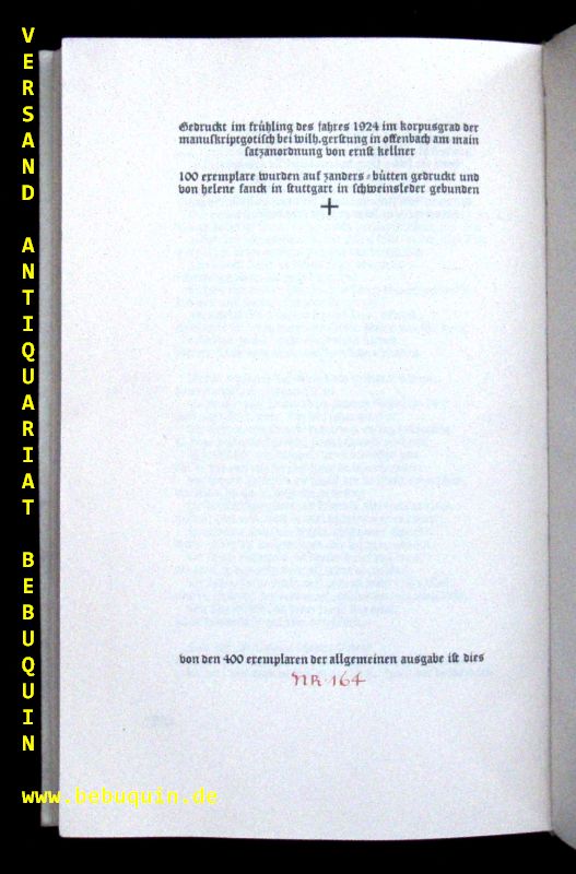 SIMROCK, Karl: (Übers.) Der Heliand. Das Lied von Christi Leben u. Leiden u. die Bruchstücke der Genesis nach d. altsächsischen Handschrift des 9. Jahrhunderts. Offenbach (Gerstung), 1924. Gr. 8°. 157 S. in zweifarb. Druck. OPb. mit Goldprägung. gutes Ex. Nr. 164 von 400 Ex. der allgemeinen Ausgabe.
