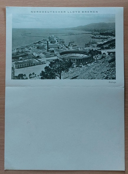SCHIFFAHRT.– NORDDEUTSCHER LLOYD BREMEN.– Menükarte des Dampfers „LÜTZOW“ vom 20. Mai 1927 IV. Mittelmeer-Fahrt 1927. Bremen (NDL), 1927. Faltblatt mit Ansicht von Malaga. gutes Ex. Der Reichspostdampfer Lützow war das zehnte Schiff der Feldherren-Klasse des Norddeutschen Lloyd (NDL) für den Dienst nach Ostasien und Australien. Das Schiff war benannt nach dem preußischen Generalmajor Ludwig Adolf Wilhelm von Lützow (1782–1834), dem Kommandeur der „Schwarzen Jäger“. Die 1914 von den Briten im Sueskanal beschlagnahmte Lützow wurde 1923 vom NDL zurückgekauft und bis 1932 auf dem Nordatlantik und zu Kreuzfahrten eingesetzt. Sie war das erste Schiff, das ein Flugzeug mit sich führte, um seinen Passagieren Rundflüge anzubieten. (…) Nach Reparatur und Umbau mit 8716 BRT vermessen, verfügte die Lützow über Einrichtungen für 820 Passagiere nur in der II. und III. Klasse. Am 14. Juni 1924 trat sie ihre erste Nachkriegsreise für den NDL nach New York an. Auch nach Kanada wurde sie eingesetzt. Im Juni 1925 führte sie erstmals drei Nordland-Kreuzfahrten durch. 1926 folgten fünf Mittelmeer-Kreuzfahrten ab dem 12. Februar: Die Lützow lief von Bremerhaven rund um Spanien in 16 Tagen nach Genua, von dort ging die zweite Reise in 15 Tagen über neun Zwischenhäfen nach Venedig und die dritte Reise von dort in 26 Tagen über Griechenland bis Konstantinopel, über Palästina nach Alexandria und zurück nach Venedig. Die vierte und fünfte Reise wiederholten die beiden ersten in umgekehrter Richtung. 1927 standen Mittelmeer- und Nordlandfahrten, aber auch eine Ostsee-/Skandinavien-Kreuzfahrt auf dem Programm; bis 1931 waren es insgesamt 17 Kreuzfahrten.