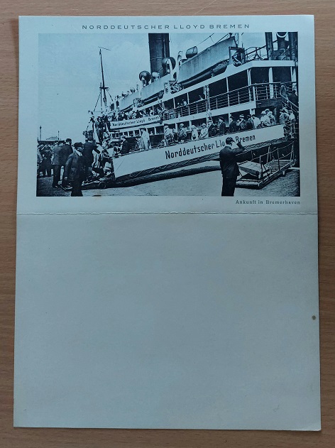 SCHIFFAHRT.– NORDDEUTSCHER LLOYD BREMEN.– Menükarte des Dampfers „LÜTZOW“ vom 29. Mai 1927 IV. Mittelmeer-Fahrt 1927. Bremen (NDL), 1927. Faltblatt mit Ansicht der Lützow bei der Ankunft in Bremerhaven. mit Eckbug, sonst gutes Ex. Der Reichspostdampfer Lützow war das zehnte Schiff der Feldherren-Klasse des Norddeutschen Lloyd (NDL) für den Dienst nach Ostasien und Australien. Das Schiff war benannt nach dem preußischen Generalmajor Ludwig Adolf Wilhelm von Lützow (1782–1834), dem Kommandeur der „Schwarzen Jäger“. Die 1914 von den Briten im Sueskanal beschlagnahmte Lützow wurde 1923 vom NDL zurückgekauft und bis 1932 auf dem Nordatlantik und zu Kreuzfahrten eingesetzt. Sie war das erste Schiff, das ein Flugzeug mit sich führte, um seinen Passagieren Rundflüge anzubieten. (…) Nach Reparatur und Umbau mit 8716 BRT vermessen, verfügte die Lützow über Einrichtungen für 820 Passagiere nur in der II. und III. Klasse. Am 14. Juni 1924 trat sie ihre erste Nachkriegsreise für den NDL nach New York an. Auch nach Kanada wurde sie eingesetzt. Im Juni 1925 führte sie erstmals drei Nordland-Kreuzfahrten durch. 1926 folgten fünf Mittelmeer-Kreuzfahrten ab dem 12. Februar: Die Lützow lief von Bremerhaven rund um Spanien in 16 Tagen nach Genua, von dort ging die zweite Reise in 15 Tagen über neun Zwischenhäfen nach Venedig und die dritte Reise von dort in 26 Tagen über Griechenland bis Konstantinopel, über Palästina nach Alexandria und zurück nach Venedig. Die vierte und fünfte Reise wiederholten die beiden ersten in umgekehrter Richtung. 1927 standen Mittelmeer- und Nordlandfahrten, aber auch eine Ostsee-/Skandinavien-Kreuzfahrt auf dem Programm; bis 1931 waren es insgesamt 17 Kreuzfahrten.