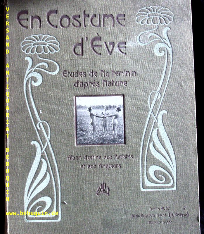 EROTIK.– ECKSTEIN, R.: En Costume d’Eve. I. Serie. Etudes de Nu Féminin d’après Nature. Album destiné aux artistes et aux amateurs. Livraison. Berlin (Eckstein), 1905. Fol. 1 Bl. Text + 17 (von 20) mont. Fototafeln von W. Hümmer. ill. OLnMappe mit mont. Foto. Einband etwas angeschmutzt, Kanten berieben, Titelblatt am Rand lädiert, die Tafeln selbst in feiner Erhaltung. EA der 1. Mappe.