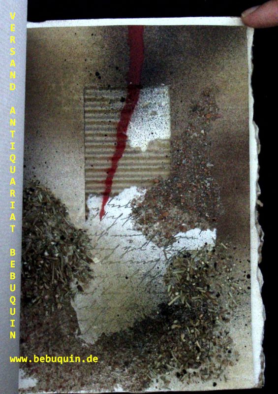 BUCHOBJEKTE.– GRUBER, Hermann: Arbeiten 1977 – 1980. Collagen, Buchobjekte, Objektbilder. Wien (Werkstattpresse), 1980. ca 50 Bl. mit zahlr. Illustrationen sowie einer Objekttafel des Künstlers. Objekteinband aus Wellpappe und Sand von hand gefertigt. etwas verzogen auf Grund der besonderen Materialien. Nr. 14 von 50 Ex. dieser seltenen Vorzugsausgabe mit der Signatur des Künstlers am Druckvermerk..