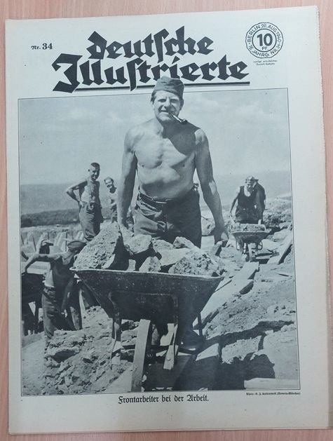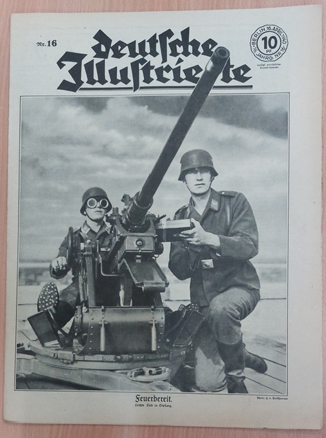 2. WELTKRIEG.– ZIMMERMANN, Richard: (Redaktion) Deutsche Illustrierte. 16. Jahrgang. 49 (von 52) Heften. Berlin (Erich Zander), 1940. 37 x 28 cm. über 1000 S. mit zahlr. zumeist fotografischen Bildern. ill. OBr. Kanten teils bestoßen und gebräunt, vereinzelte Einrisse, es fehlen die Hefte 1, 3 und 25. Eindrucksvolles Dokument für Nationalsozialismus und 2. Weltkrieg. „Deutsche Illustrierte“ ist der Name einer Zeitschrift, die von 1928 bis 1944 in Deutschland erschienen ist. Es handelte sich um ein Magazin mit einem breiten Themenspektrum, das sowohl aktuelle politische und gesellschaftliche Ereignisse als auch kulturelle Inhalte und Unterhaltung umfasste. Die Zeitschrift war bekannt für ihre hochwertigen Illustrationen und Fotografien. (Wikipedia)