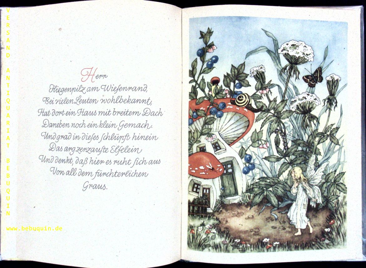 HANRATTY, Margarethe: Der verlorene Elfenschleier. Ein Märchen in Versen. Rendsburg (Wilkens), 1948. Gr. 8°. 14 Bl. mit 14 farb. Bildtafeln von Regina Steib. farb. ill. OHLn. leicht angeschmutzt. seltene EA.