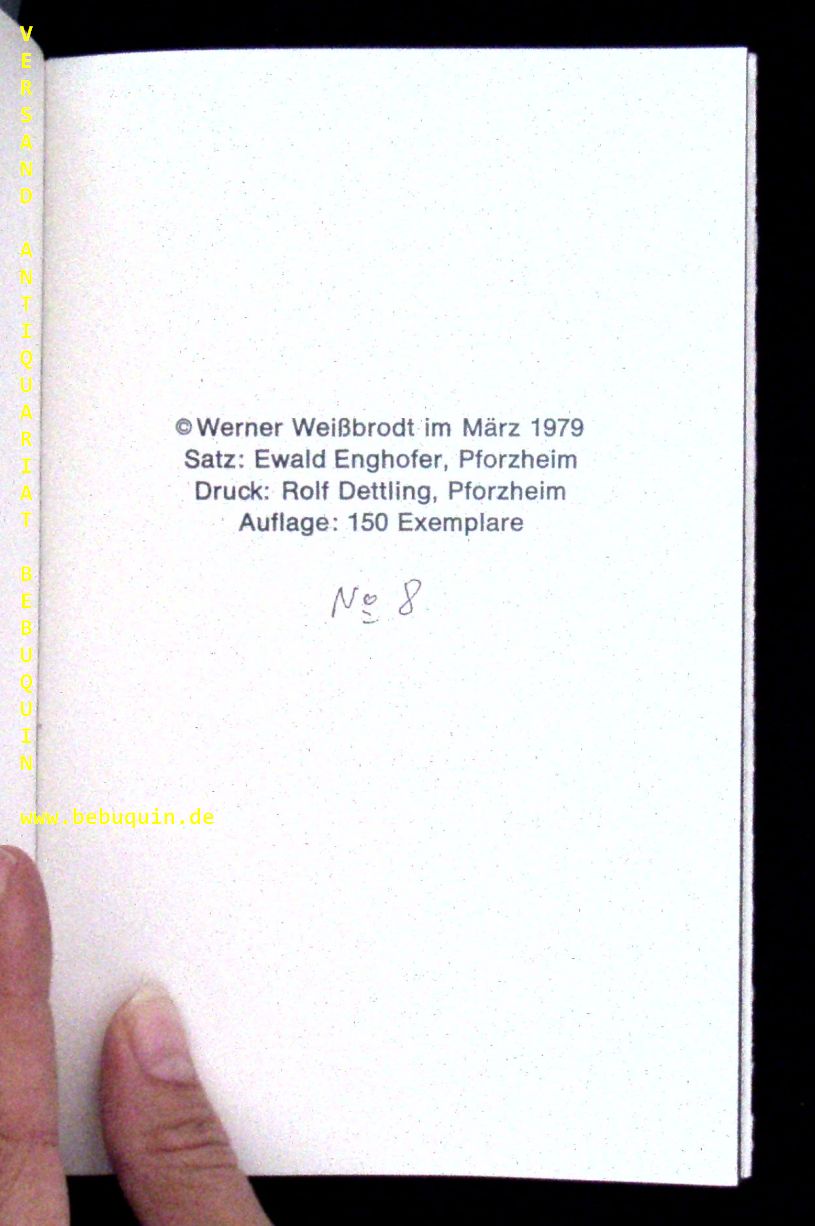 WEISSBRODT, Werner: Sonnenalphabet. Pforzheim (Weißbrodt), 1979. 48 S. mit ca 24 farb. Bildtafeln. farb. ill. OKart. tadellos. Nr. 8 von 150 Ex. der EA.